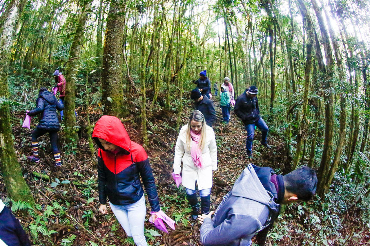 A baixa temperatura, perto de zero grau, não foi empecilho para os participantes da 1ª Caminhada Cata-Pinhão, que aconteceu no dia 7 de julho, domingo, em Piraquara. Adultos, crianças e melhor idade aproveitaram a manhã gelada e se divertiram nas trilhas, dentro das matas de araucárias.
