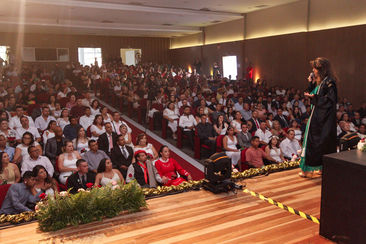 A cerimônia aconteceu no Centro de Formação dos Profissionais da Educação (Cenforpe) e celebrou a união de 79 casais. A troca de alianças foi presenciada por padrinhos, convidados e familiares. A cerimônia ecumênica foi realizada pela idealizadora e coordenadora do Programa Justiça no Bairro, a desembargadora Dr.ª Joeci Machado Camargo. O evento também teve a presença da prefeita Marli Paulino, da vice-prefeita Rosa Maria, do deputado federal Luizão Goulart, da secretária de Assistência Social, Rosangela Batista; vereadores Arnaldo do Vizinho Solidário, Airton, Carlinhos do Elisa, Cecilia Padovan da Saúde, Jane Carteira, Polaco do Pérola, Marcinho e Zé Francisco, entre outras autoridades.