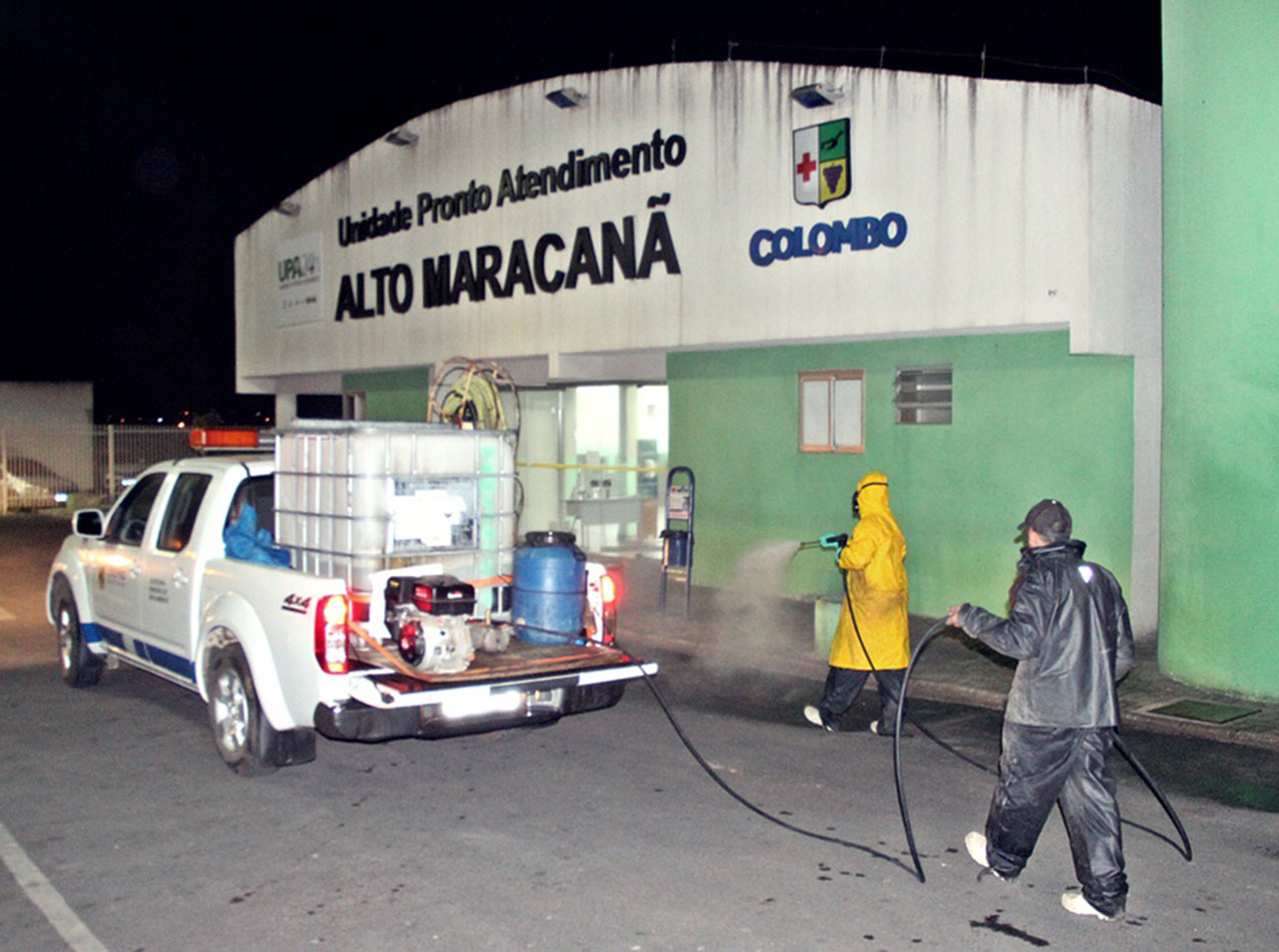 A luta contra o novo coronavírus continua em Colombo. Na noite da sexta-feira, 08, calçadas, ruas e espaços públicos foram esterilizados pelas equipes da prefeitura. “A desinfecção das ruas é sempre motivo de preocupação da nossa população. Por isso, estamos intensificando ainda mais, em tempos de pandemia. Apesar da desinfecção, a principal medida para evitar que a doença se espalhe é o isolamento social”, disse a prefeita Beti Pavin.