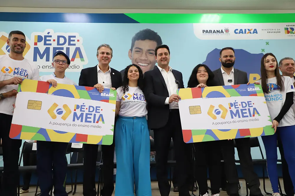 O Paraná formalizou a adesão ao programa Pé-de-Meia, do Ministério da Educação, que prevê o pagamento de uma poupança aos estudantes que cursam o ensino médio. A cerimônia de adesão aconteceu no dia 20, quarta-feira, no Palácio Iguaçu, em Curitiba, com a presença do governador Carlos Massa Ratinho Junior e o ministro da Educação, Camilo Santana.
