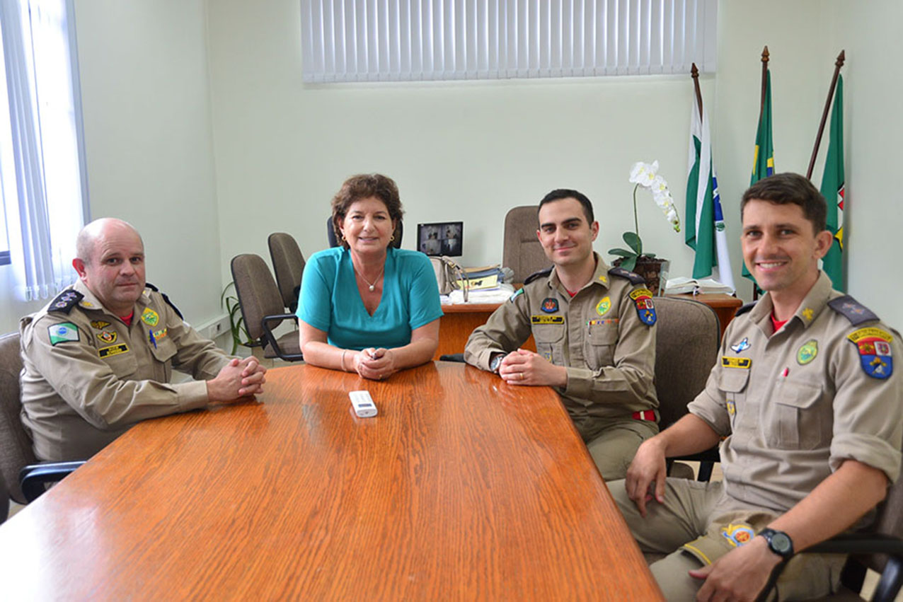 Na segunda-feira, dia 17, a Prefeita Beti Pavin recebeu, em seu gabinete, o 1º Tenente Nikolas, comandante do 3º subgrupamento de Bombeiros, o Major Schreiber, comandante do 7º Grupamento de Bombeiros e o 1º Tenente Siloto, chefe da 4ª seção, do 7º grupamento de Bombeiros.