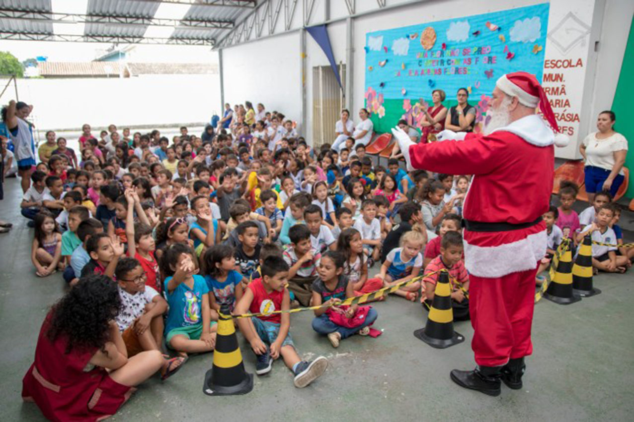 Dezembro é a época de celebrar o Natal, e com a chegada desta tão esperada data, o espírito de solidariedade desperta, fazendo com que mais ações sociais aconteçam. Uma delas foi a presença do Papai Noel na Escola Municipal Irmã Maria Eufrásia Torres, localizada no bairro Ipê, que levou alegria e presentes para os alunos. Na terça-feira, dia 18, alunos do 1º ao 5º ano, do período matutino, vespertino e integral receberam o Papai Noel e ganharam presentes de Natal.
