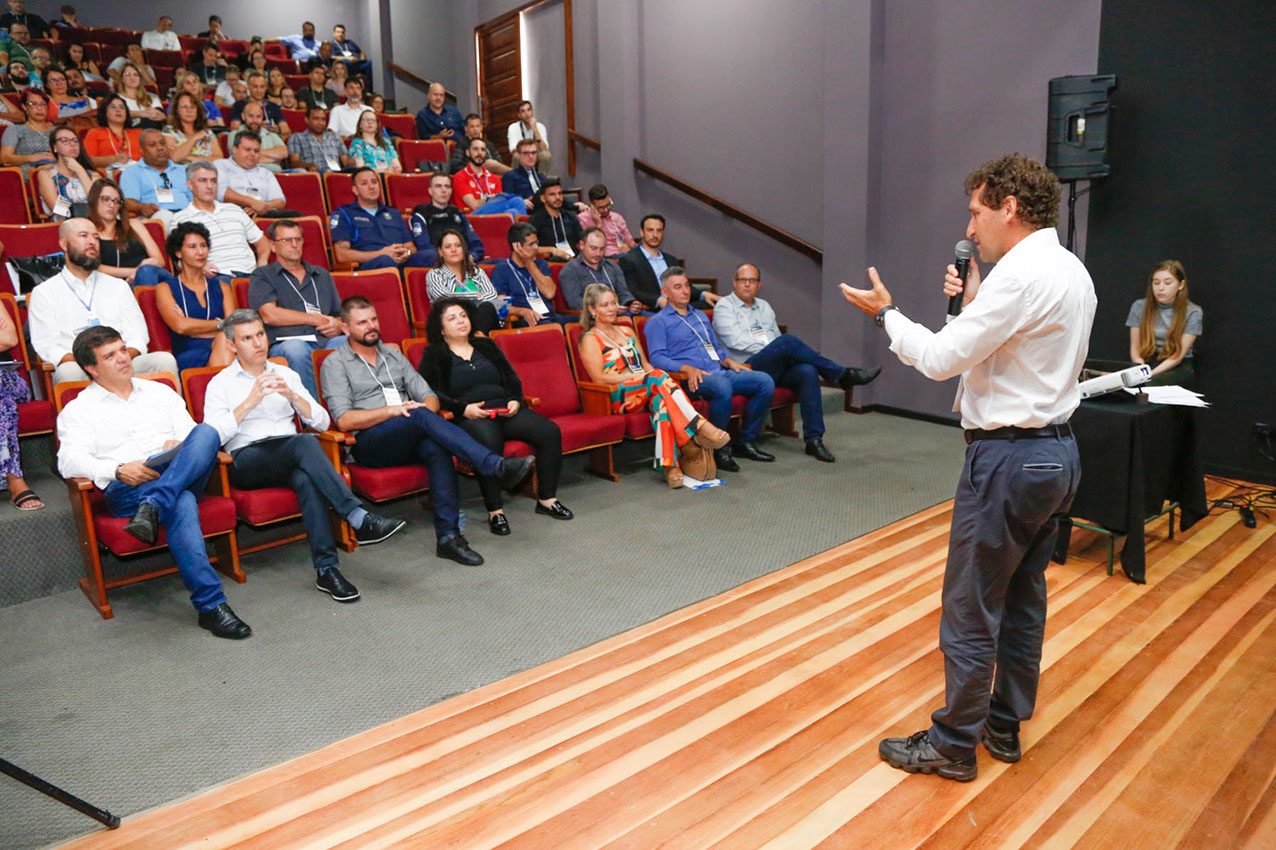 Durante a abertura, o prefeito Marcus Tesserolli, o Marquinhos, destacou a importância da discussão e troca de experiências no serviço público proporcionada pelo evento. “Esse Fórum de Cidades Digitais, que é fundamental, nos ajuda como forma de capacitar, trazer ferramentas para que nós possamos entregar lá na ponta obras e um serviço cada vez melhor para o cidadão da nossa cidade”, enfatizou.