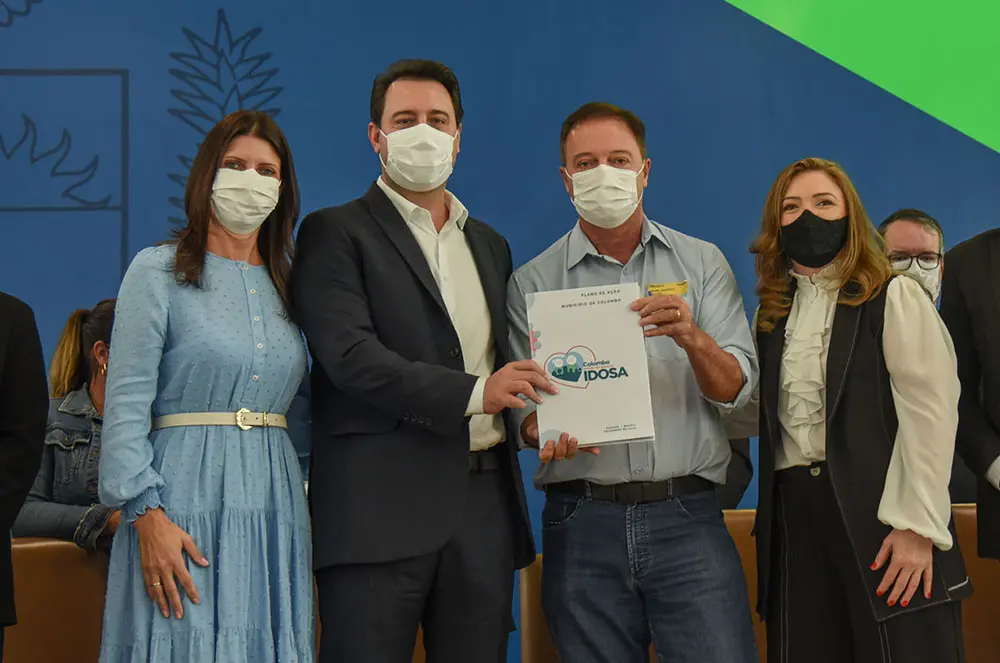O prefeito Helder Lazarotto e a secretária de Assistência Social, Elis Lazarotto, entregaram ao governador Carlos Massa Ratinho Júnior, na manhã do dia 28 de março, o Plano Municipal de Ações para tornar Colombo, Cidade Amiga do Idoso. A solenidade aconteceu no Palácio Iguaçu, com a presença da deputada federal Leandre Dal Ponte e de representantes da Organização Pan-Americana de Saúde/Organização Mundial da Saúde (OPAS/OMS).