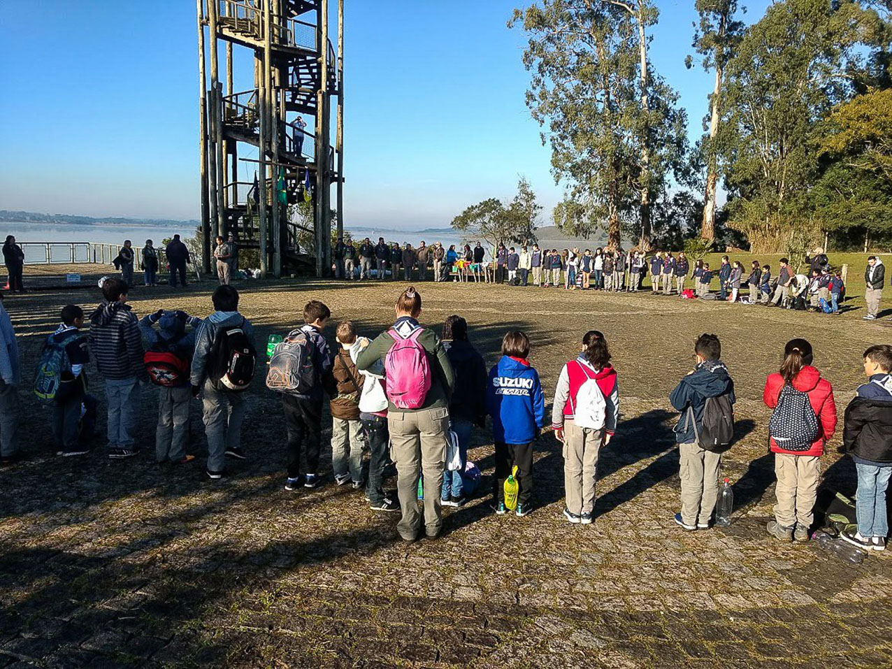 Em Pinhais, grupos de escoteiros participaram do mutirão com uma ação em um local paradisíaco do município, às margens da Represa do Iraí, no Parque das Nascentes.