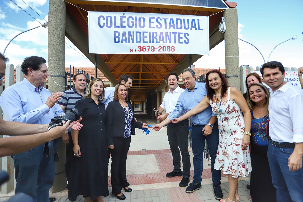 “Foi construída uma escola grande, com laboratórios de física e informática, toda ela modernizada para atender os projetos que estamos implantando na educação do Paraná”, afirmou Ratinho Junior. Ele citou programas como o Ganhando o Mundo, de intercâmbio, que começa a ser implantado neste ano e que vai oferecer bolsas de estudos nos Estados Unidos, Canadá e Inglaterra a alunos da rede estadual.