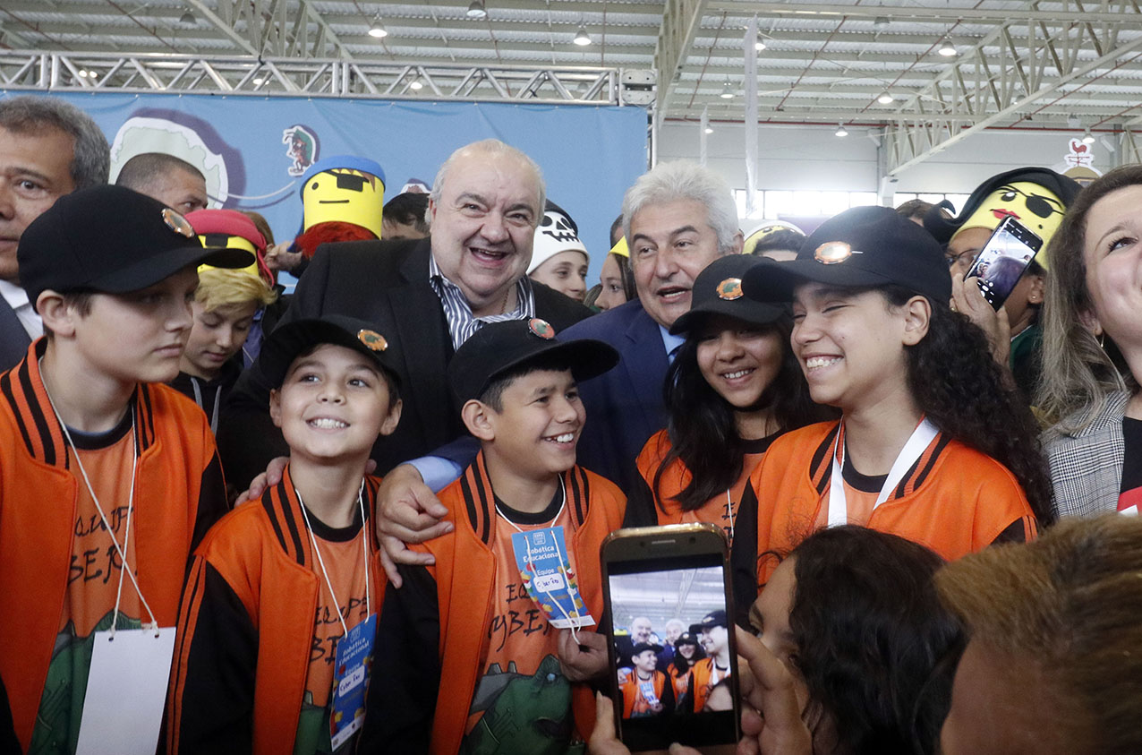 “As pessoas podem falar que vocês não conseguirão alcançar seus sonhos. Não deem ouvidos. Acreditem em vocês e tenham coragem.” Esse foi o conselho dado pelo ministro da Ciência, Tecnologia, Inovações e Comunicações, Marcos Pontes, à equipe de robótica Conectados, da Escola Municipal Durival Britto e Silva (Cajuru). O ministro e o prefeito Rafael Greca conversaram com os estudantes no dia 4, quinta-feira, durante a Expo Educação 2019, a feira interativa de inovação promovida pela Secretaria Municipal de Educação no Parque Barigui.