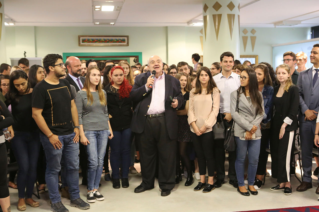 O Prefeito Rafael Greca contou aos estudantes que também foi estagiário na Prefeitura de Curitiba. “Ao ver vocês tão moços, tão jovens, me lembro do dia em que entrei na Prefeitura para ser estagiário do Ippuc, convidado pelo então Prefeito Jaime Lerner”, disse o prefeito.
