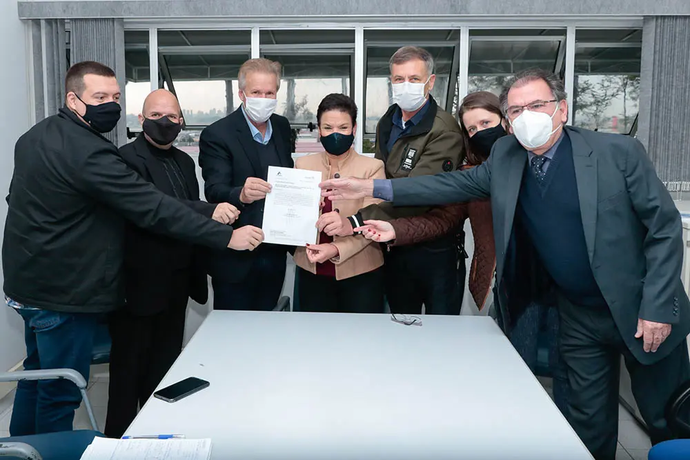 Na manhã de segunda-feira (16), a prefeita de Pinhais, Marli Paulino, recebeu a visita do diretor de Regularização Fundiária da Companhia de Habitação do Paraná (Cohapar), Luis Raimundo Corti, este acompanhado do seu assessor Reginaldo Nogueira Guimarães Junior. Esta visita foi para realizar a entrega do ofício nº 1.249/2021 – DIRF que oficializa a deliberação da diretoria da Cohapar com a liberação direta da área do Perdizes II, a ser regularizada por meio do programa Moradia Legal do Tribunal de Justiça do Estado do Paraná.