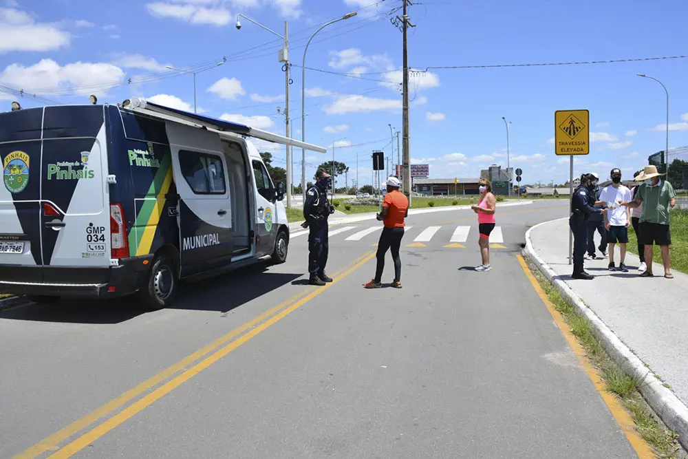 Nestas ocasiões, as equipes da GM em conjunto com a Defesa Civil orientam a população que frequenta os espaços públicos de Pinhais, especialmente em relação aos cuidados preventivos da Covid-19, como o uso de máscara.