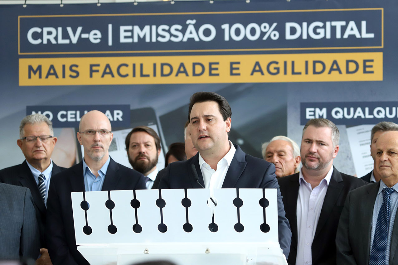 O Departamento de Trânsito do Paraná (Detran-PR) começou a emitir na terça-feira, dia 04, o Certificado de Registro de Licenciamento de Veículo em meio eletrônico (CRLV-e). O anúncio foi feito pelo governador Carlos Massa Ratinho Junior, em evento no Palácio Iguaçu, com a participação do diretor-geral do Detran-PR, César Vinícius Kogut.