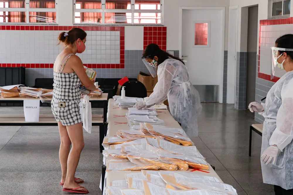 A Prefeitura de Pinhais, por meio da Secretaria Municipal de Educação (Semed), continua a realizar o atendimento educacional de forma remota nas instituições da Rede Municipal de Ensino, neste ano letivo de 2021. Uma das frentes de atendimento, é a entrega dos kits de alimentação escolar. Até o momento, já foram distribuídas em torno de 120 toneladas de alimentos aos estudantes da Rede Municipal de Ensino. Com entregas mensais, os kits são compostos por alimentos como arroz, feijão, chá mate, farinha de trigo, leite em pó, frutas e verduras, além de carnes, peixe, frango ou ovos.