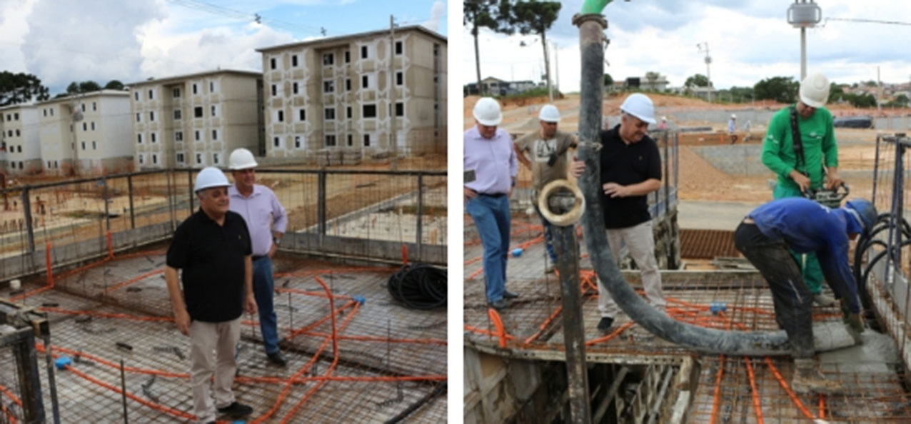 Acompanhados do engenheiro Mauro Henrique Michelis, da construtora Village, prefeito Marcelo Puppi e o vice Mauricio Rivabem conheceram por dentro, os novos apartamentos, alguns dos quais já estão em fase de acabamento. Os blocos de apartamentos são construídos com uma nova tecnologia, todo em concreto, que lhes confere maior segurança e durabilidade, além de conforto aos futuros moradores, inclusive no quesito silêncio. O prefeito conheceu de perto a técnica, inclusive acompanhando a concretagem de uma das unidades.