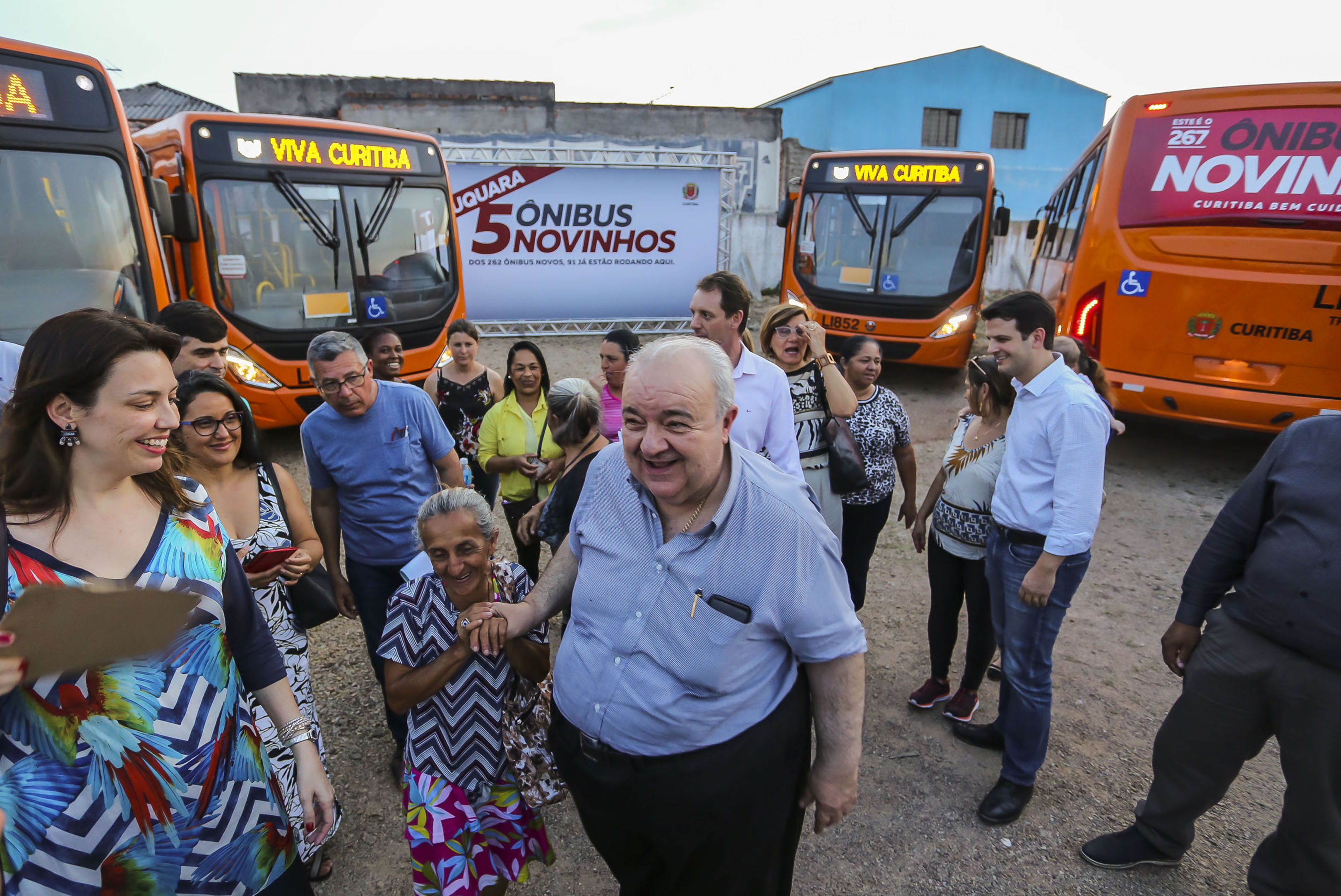 O prefeito Rafael Greca disse aos moradores da região, reunidos no salão paroquial da Capela São Sebastião, que mais ônibus novos estão previstos para Curitiba. Somente na regional Tatuquara, uma frota de 91 veículos zero quilômetro vai atender o povo até março do ano que vem.