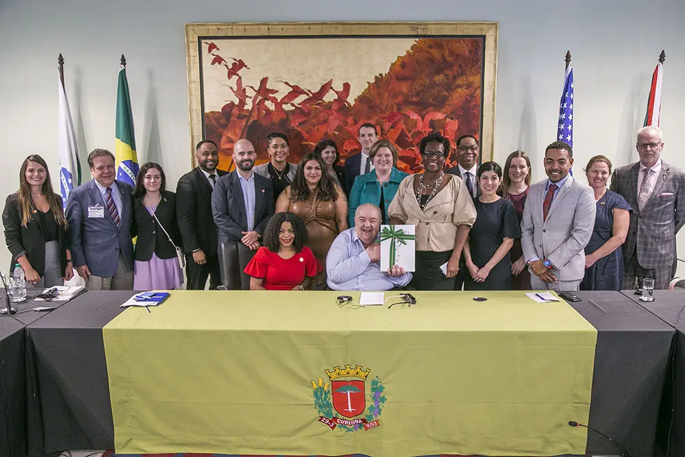 Os laços de irmandade e a cooperação técnica entre Curitiba e a cidade de Columbus (EUA), capital do estado de Ohio, estão mais estreitos e renovados. No dia 24, quarta-feira, o prefeito Rafael Greca recebeu a delegação internacional de Columbus no Palácio 29 de Março, sede da Prefeitura de Curitiba. A comitiva veio para a capital paranaense conhecer as soluções locais nas áreas de planejamento urbano, transporte público, mobilidade urbana, habitação popular e saúde infantil.