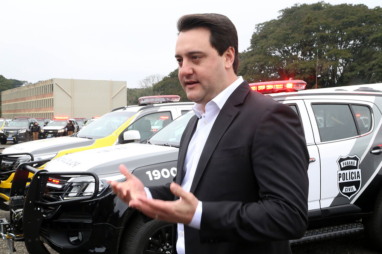 O governador Carlos Massa Ratinho Junior destacou, no dia 10, quarta-feira, o esforço que o Estado tem feito para recompor e atualizar a frota de viaturas policiais. Em solenidade para a entrega de 100 novos veículos para as polícias Militar e Civil e para os Bombeiros, ele lembrou que assumiu o governo com cerca de 40% das viaturas policiais no conserto e que vem trabalhando para resolver a situação.