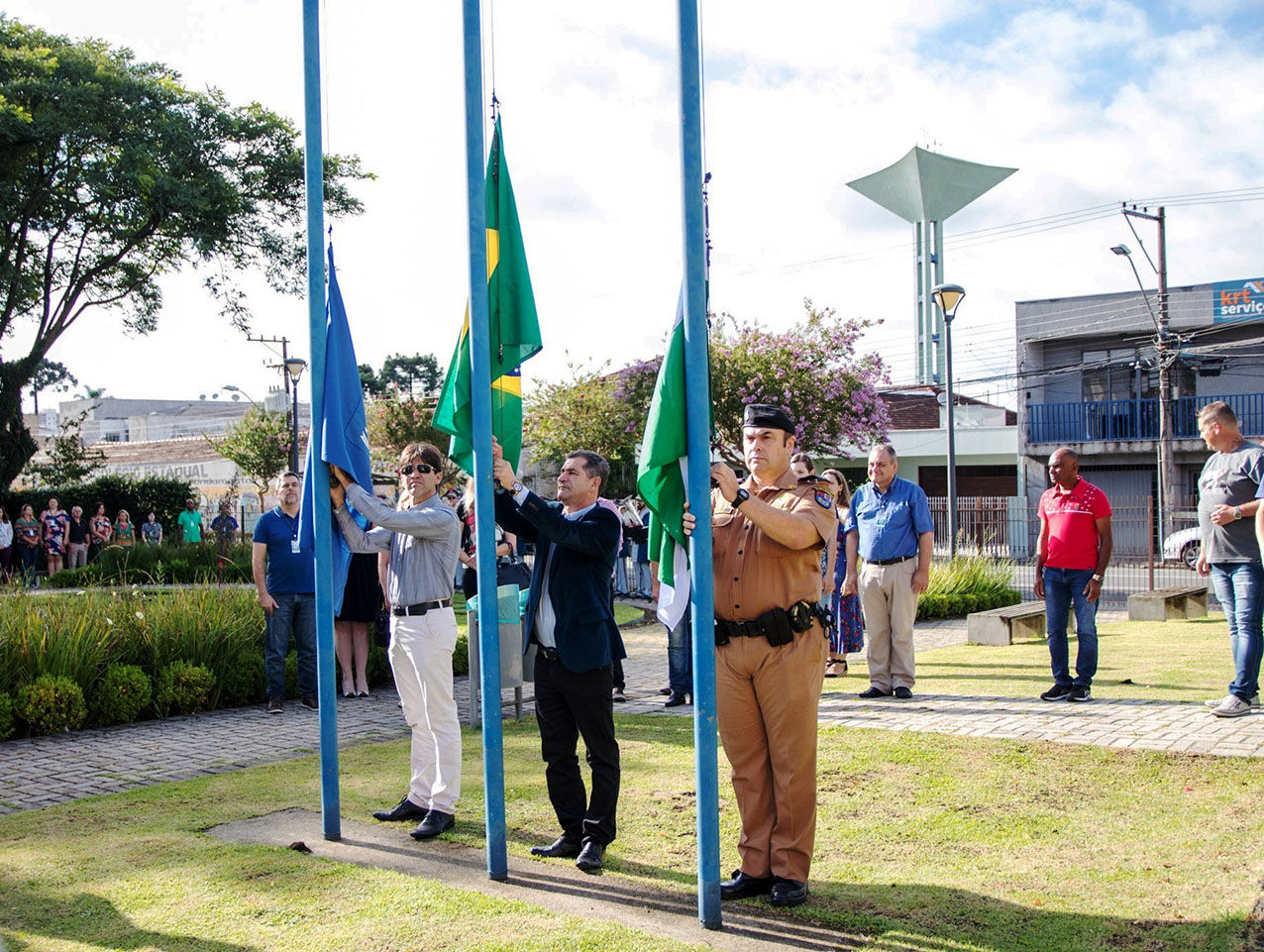 A cidade de São José dos Pinhais amanheceu, na terça-feira 8 de janeiro, fazendo aniversário, e para comemorar os 166 anos de emancipação política do município a administração pública da cidade realizou, na segunda-feira (07), pela manhã, no Paço Municipal, uma cerimônia que reuniu no Pavilhão de Bandeiras da Prefeitura, secretários, representantes do Poder Legislativo e Executivo, autoridades civis e religiosas além de servidores que na ocasião acompanharam o hasteamento das bandeiras nacional, estadual e do município durante a execução de hinos realizadas pela tradicional Banda Marcial de SJP.