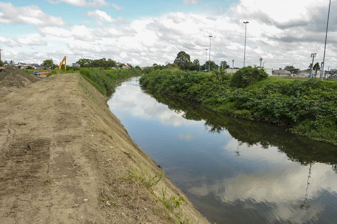 Este importante trabalho permite que a vazão do Rio não sofra com o mato e acúmulo de materiais que se instalam nas margens. A Prefeitura de Pinhais realiza constantes serviços nos seus rios, bem como córregos e no sistema de drenagem nas ruas. Todos estes trabalhos contribuem para que não haja mais enchente nos bairros da cidade em dias com grande volume de chuva.